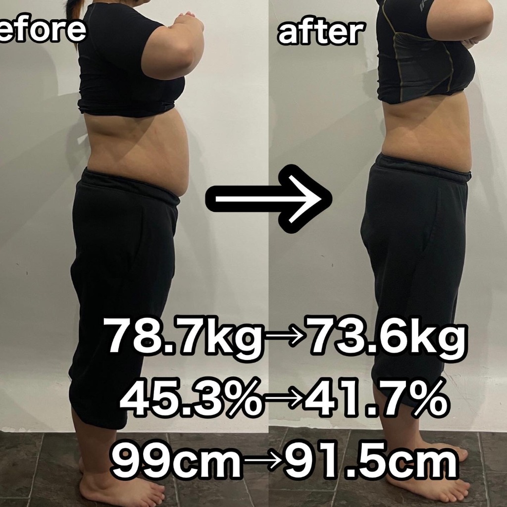 過去に他店のパーソナルでダイエット経験があったが、産後を機にリバウンドをしてしまい当店に入会されました。