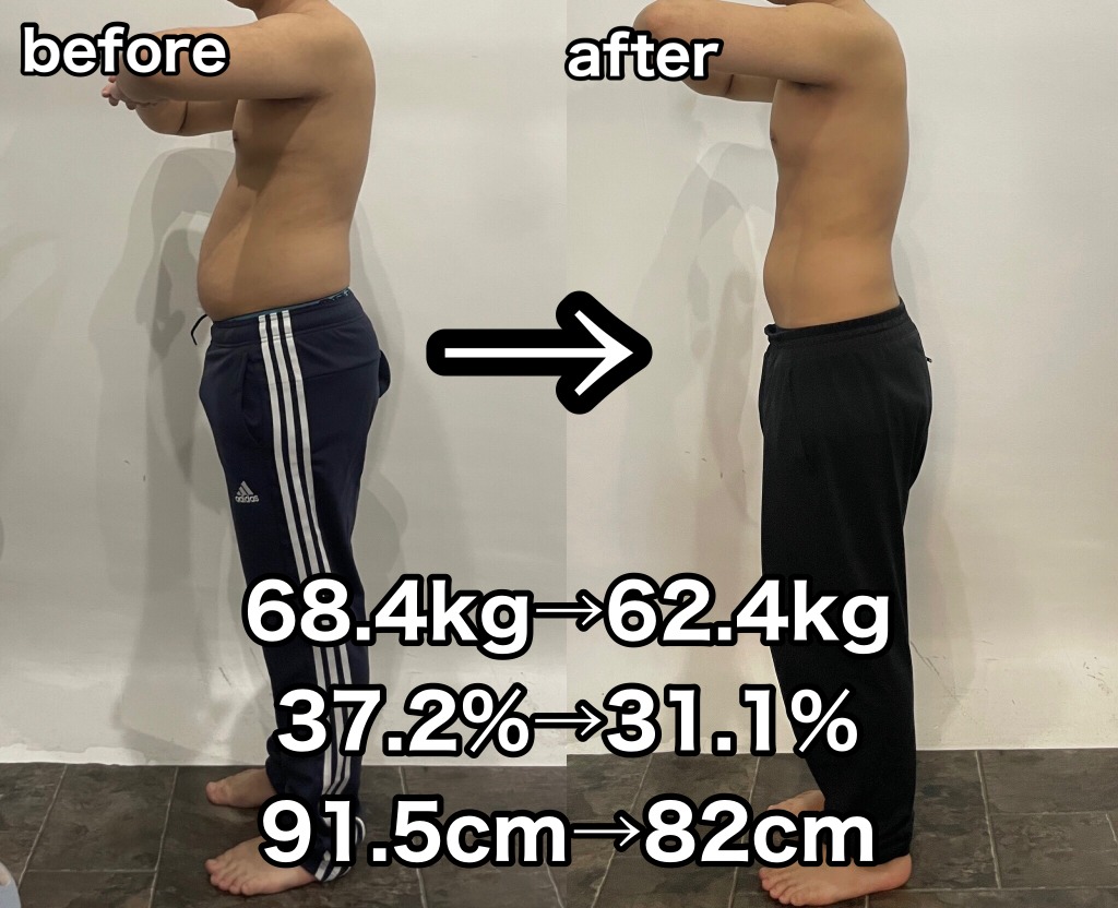 体重:-6kg 体脂肪:-6.1% ウエスト:-9.5cm の結果が出ました!!