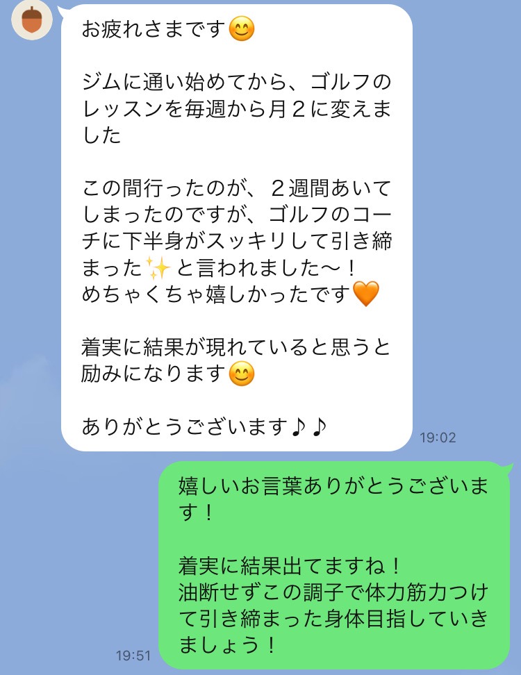 「パーソナルトレーニングをする前よりも食事量は増えているが体重が落ちて驚いた!」