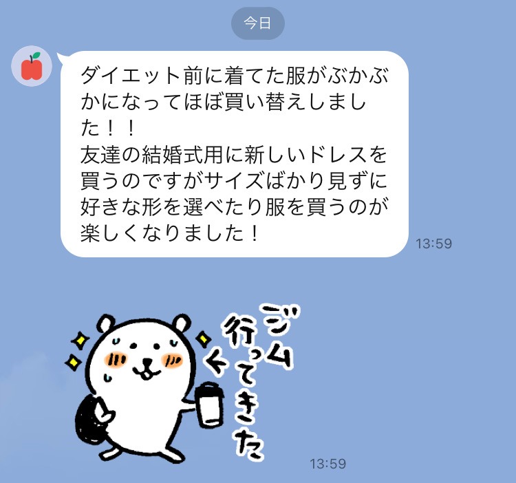 ダイエット成功したお客様から嬉しい報告のLINE頂きました!!