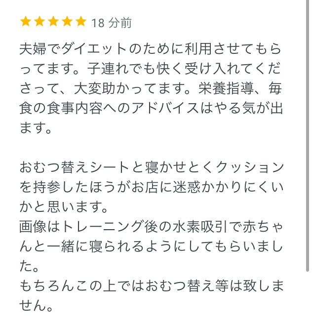 お子様連れのお客様から嬉しい口コミを頂きました!!