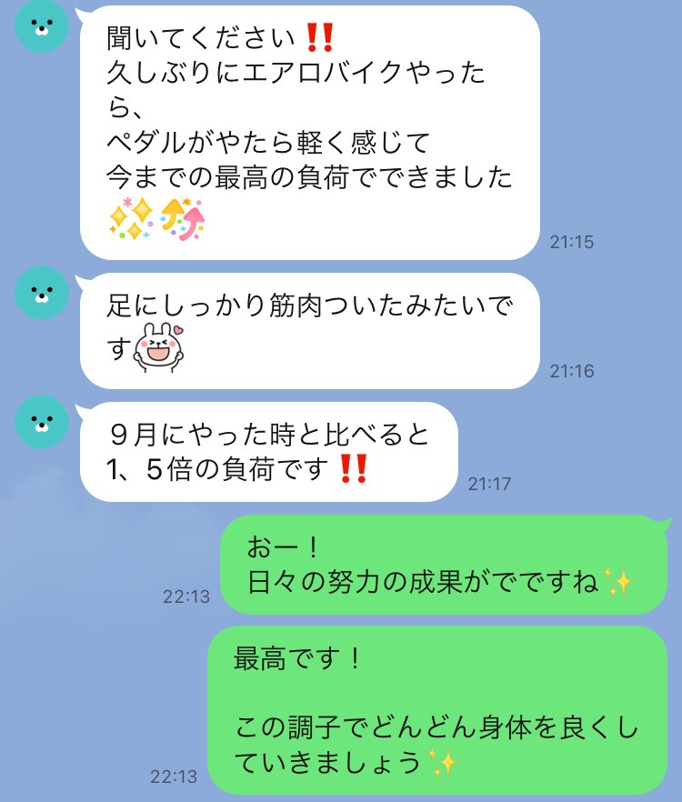集中プログラムをスタート1ヶ月経過したお客様からの嬉しいLINE頂きました!!
