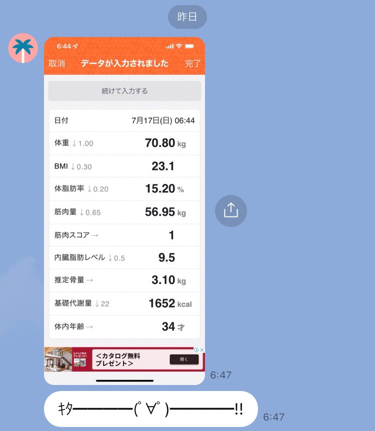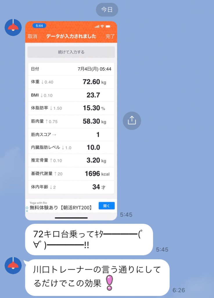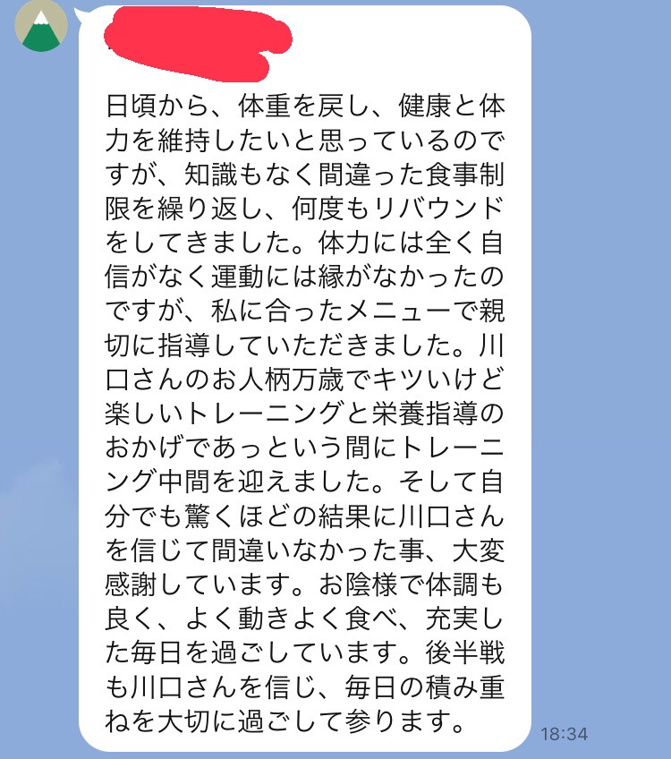 集中プログラムのお客様から体重の報告をいただきました。