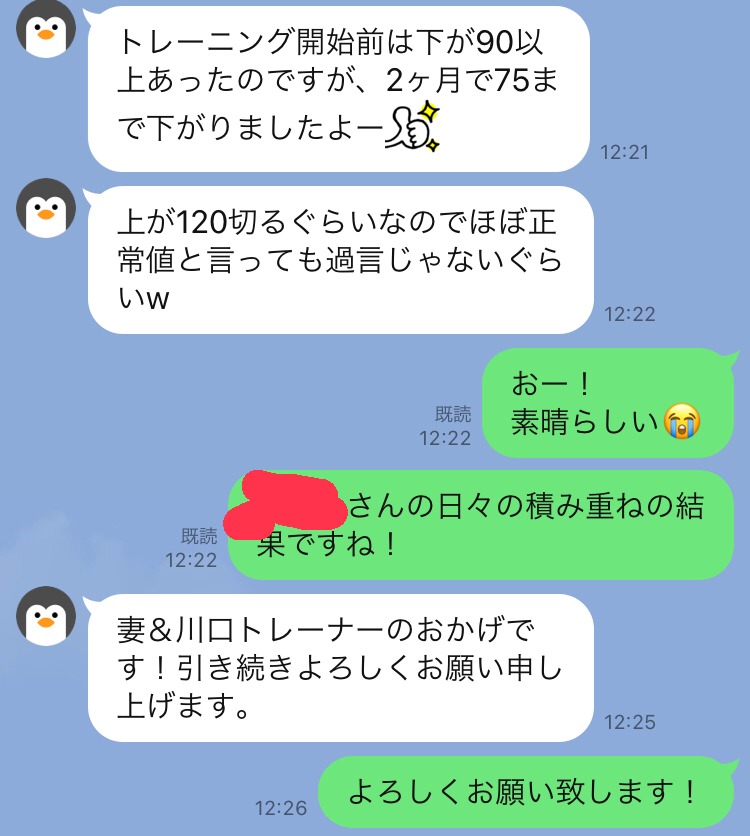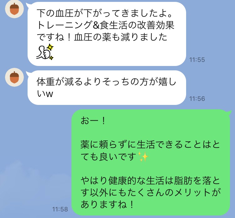 パーソナルトレーニングを始めて血圧が下がってきたと嬉しい報告をお客様から頂きました。