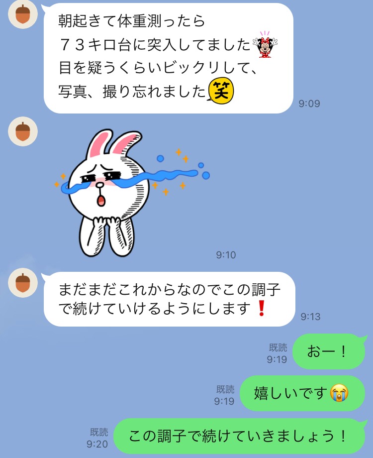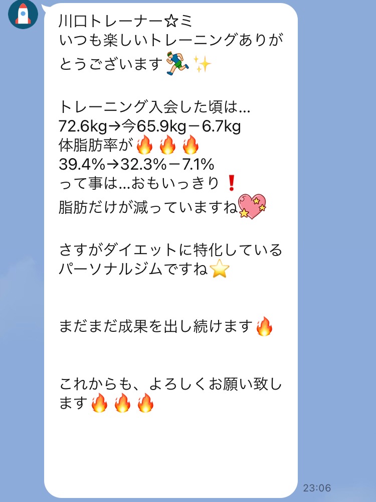 入会してから体重:-6.7kg 体脂肪:-7.1%!! お客様から嬉しいLINEいただきました!!