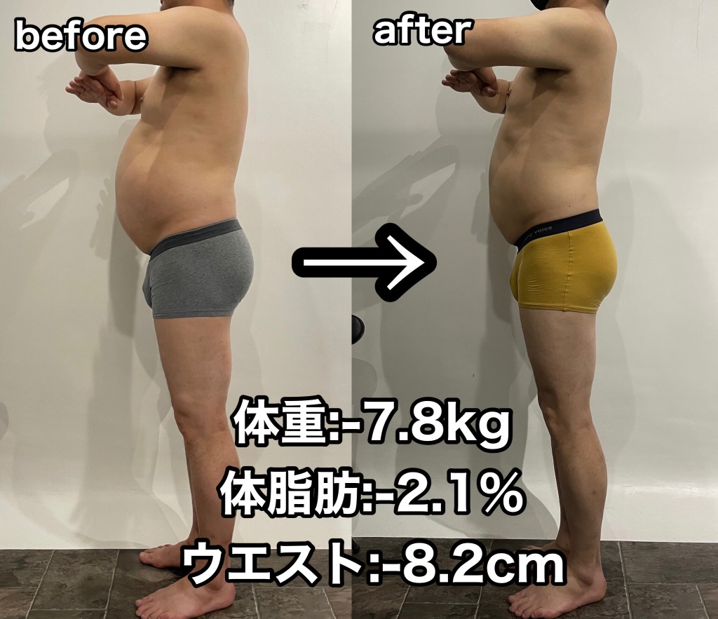 仕事上外食や飲酒が多い中コツコツと続けてダイエットされているお客様。