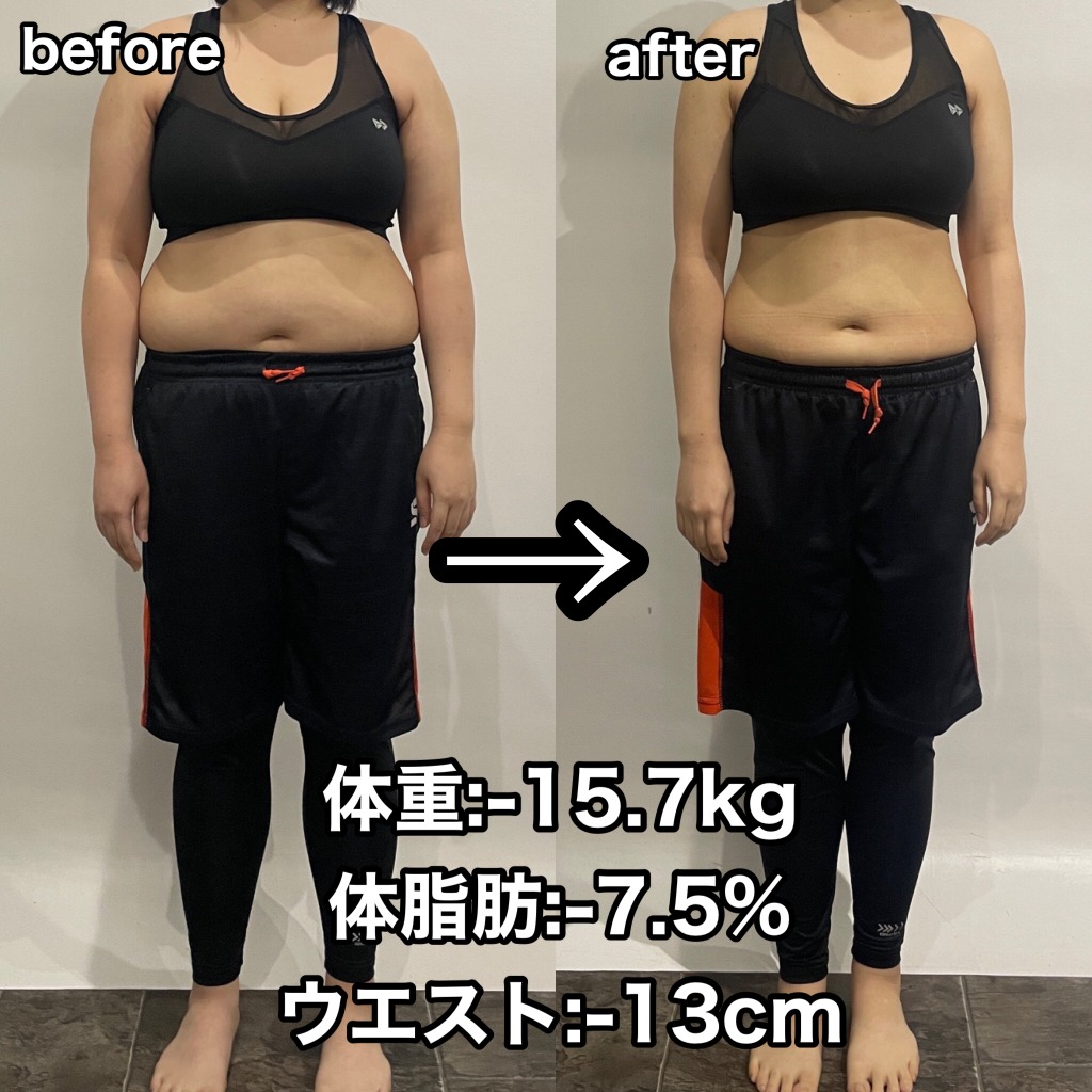 いよいよやばいと思い本気でダイエットを成功させたいという思いで当店に入会されました。