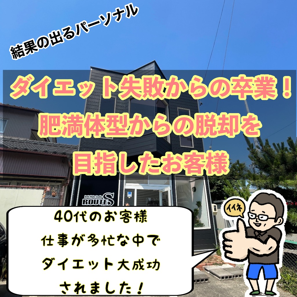 生まれつき肥満体型で過去にも食事管理のダイエットを試したが中々うまくいかなかったお客様が当店でダイエットを成功されました!