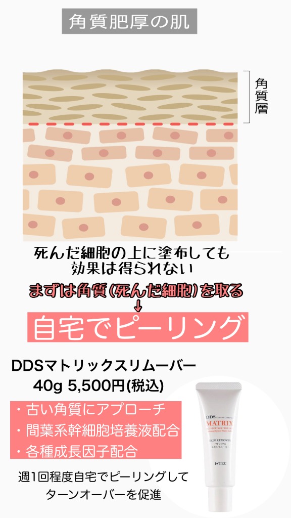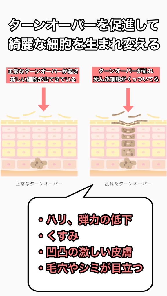 古い角質を落とすことによって、肌のターンオーバーを改善し、ハリツヤのある肌になります。