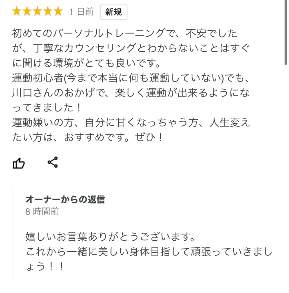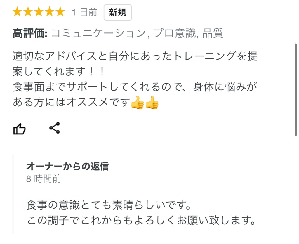 トレーニングの指導以外にも、食事管理、栄養学講座、LINEでのサポートも行い、お客様の悩みを改善し理想の身体を目指します。