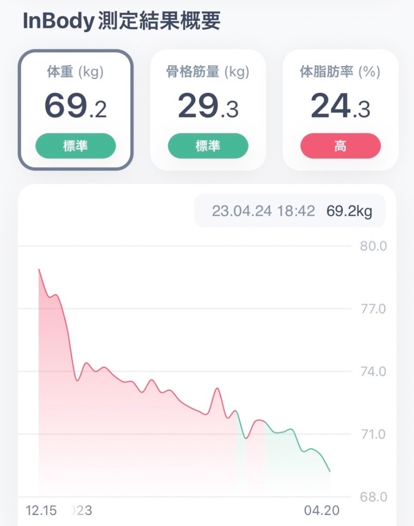 食事管理×トレーニングで生活の質を改善された成果です。
